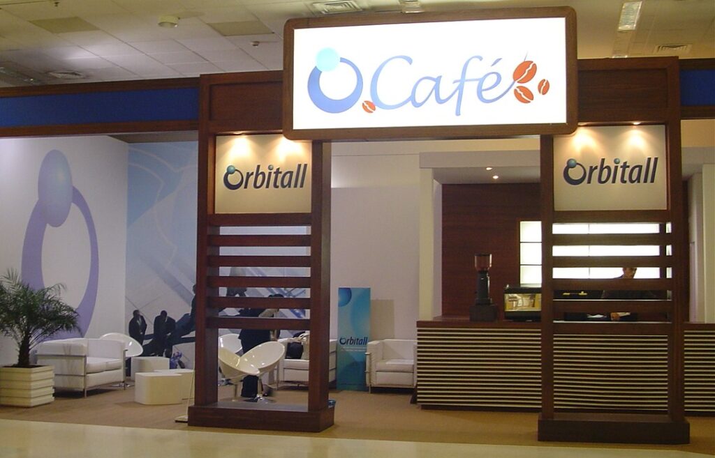 Fotografia colorida da construção de torre cenográfica da Vivo Fotografia colorida da construção do estante da Vivo Arte colorida da